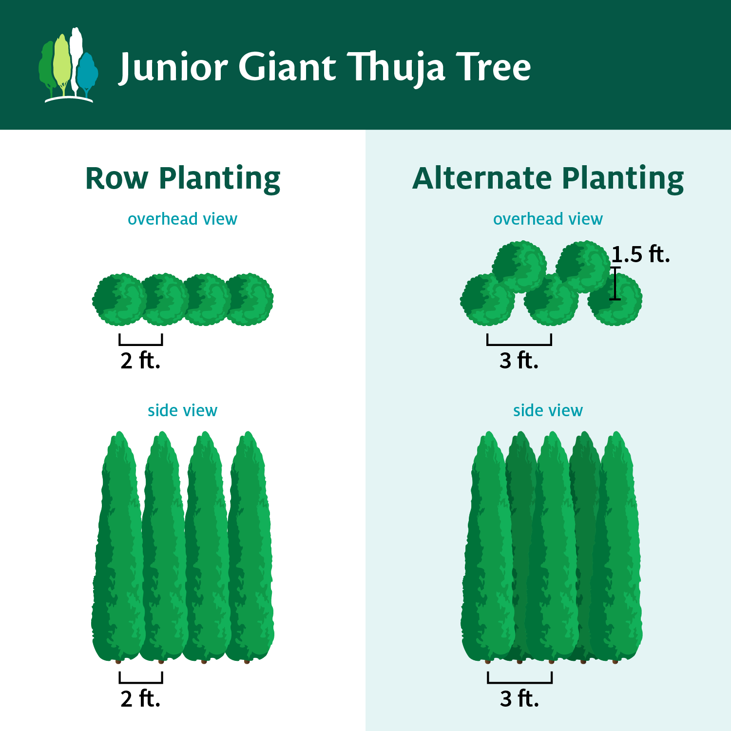 Versatile, strong-rooted, and virtually carefree, the Junior Giant Thuja Tree is the perfect pick for privacy in tight spaces. If you love the Thuja Green Giant but have a small yard, the Junior Giant Thuja Tree is the solution you’ve been asking for!