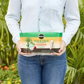Use MiracleGro® Fruit & Citrus Plant Food Spikes once a season in the Spring and Fall, for lush foliage and palms, and greater fruit production.