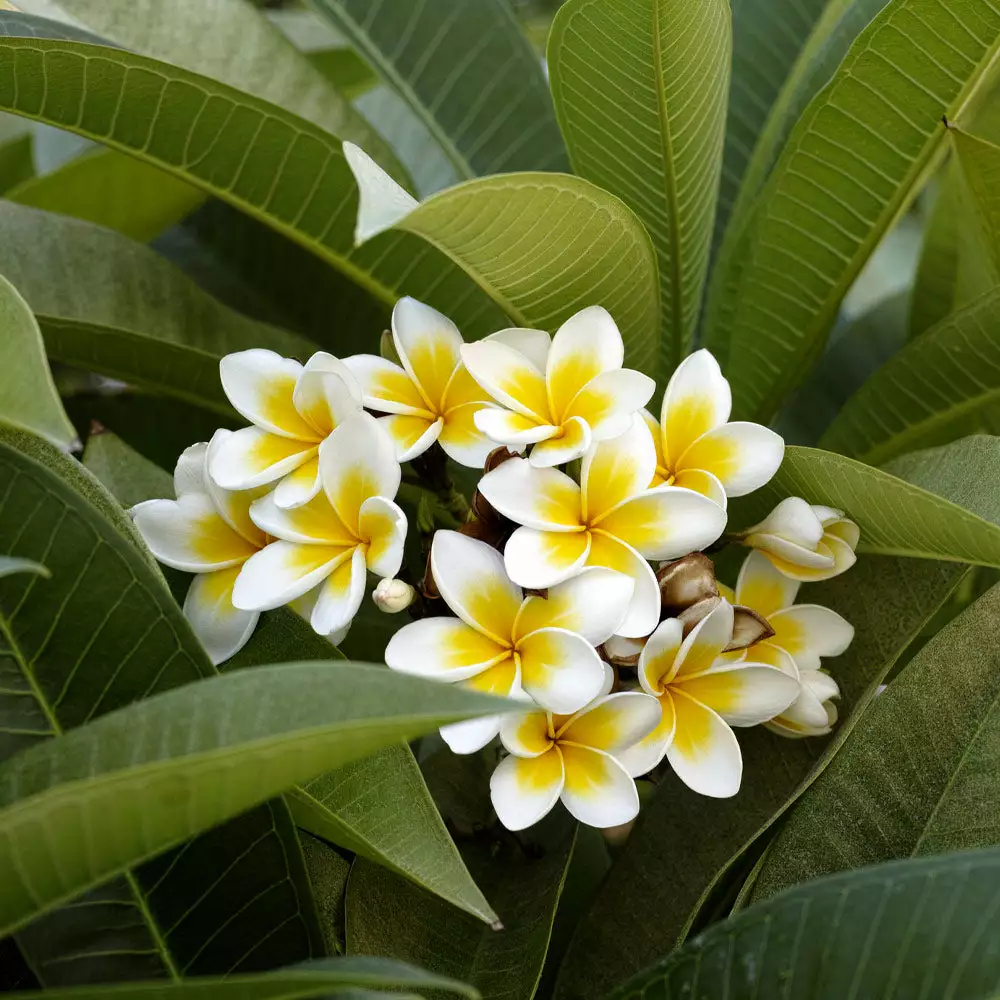 Plumerias, also known as Frangipani or the ‘lei flower’, are native to tropical areas like Hawaii…but you don’t have to live in a tropical climate to grow them. If you don’t live in southern Florida, simply place these Hawaiian plants in a container and bring it indoors in the colder months. Plumerias are tough, with a high level of drought and heat resistance and high salt tolerance. This makes them perfect for any location, including apartment terraces or suburban patios.