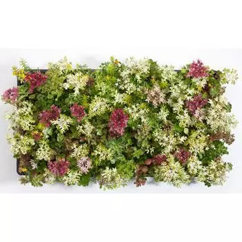 Varieties represented in the mix include Angelina, Blue Spruce, Fuldaglut, Dragons Blood, Acre, and others. These varieties create a range of colors, from green and yellow to red and blue, changing color with the season.